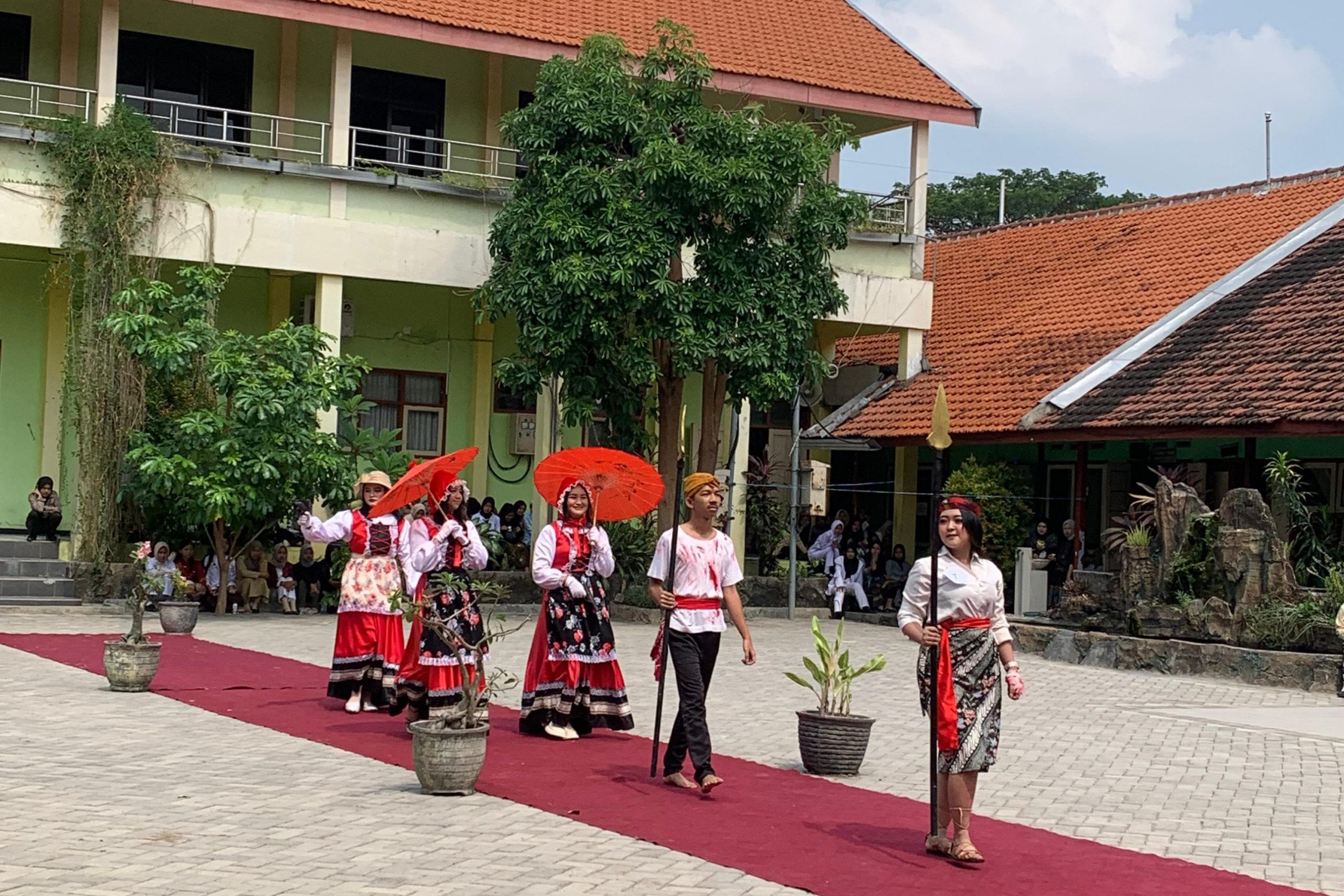 Selain itu, ada pula peserta dengan pakaian adat yang tampil sambil mempersembahkan sebuah tarian. Tak sampai disitu, salah satu peserta bahkan tampil dengan sajian drama penjajahan Belanda, lengkap dengan kostum, atribut, dan properti yang mereka bawa. Mereka semua tampil dengan totalitas diatas karpet merah yang tergelar di lapangan depan SMKN 1 Sooko pagi itu.